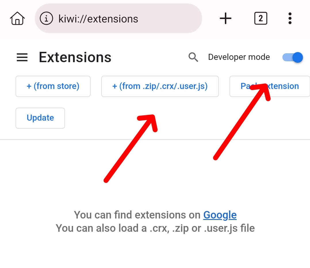 Enable developer mode and choose from .zip/.crx, select the .zip file downloaded in step 2